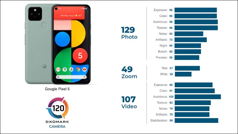 DXOMARK 公布 Google Pixel 5 相機評測成績:120分 ,成目前最強雙鏡頭拍照手機
