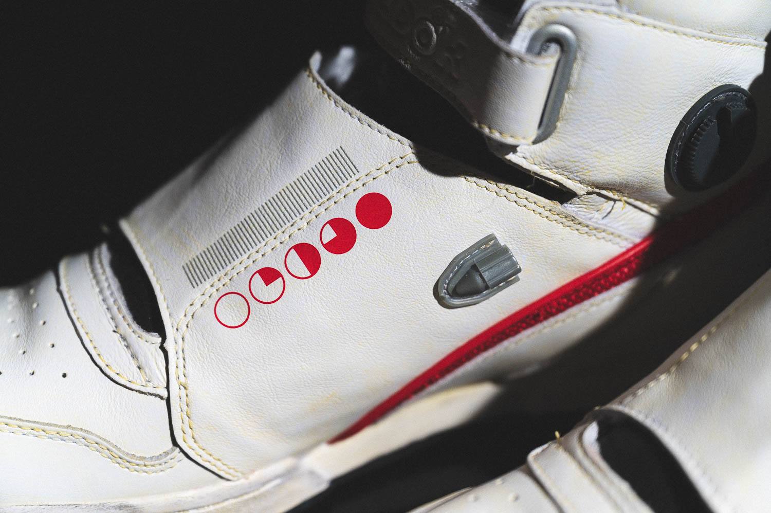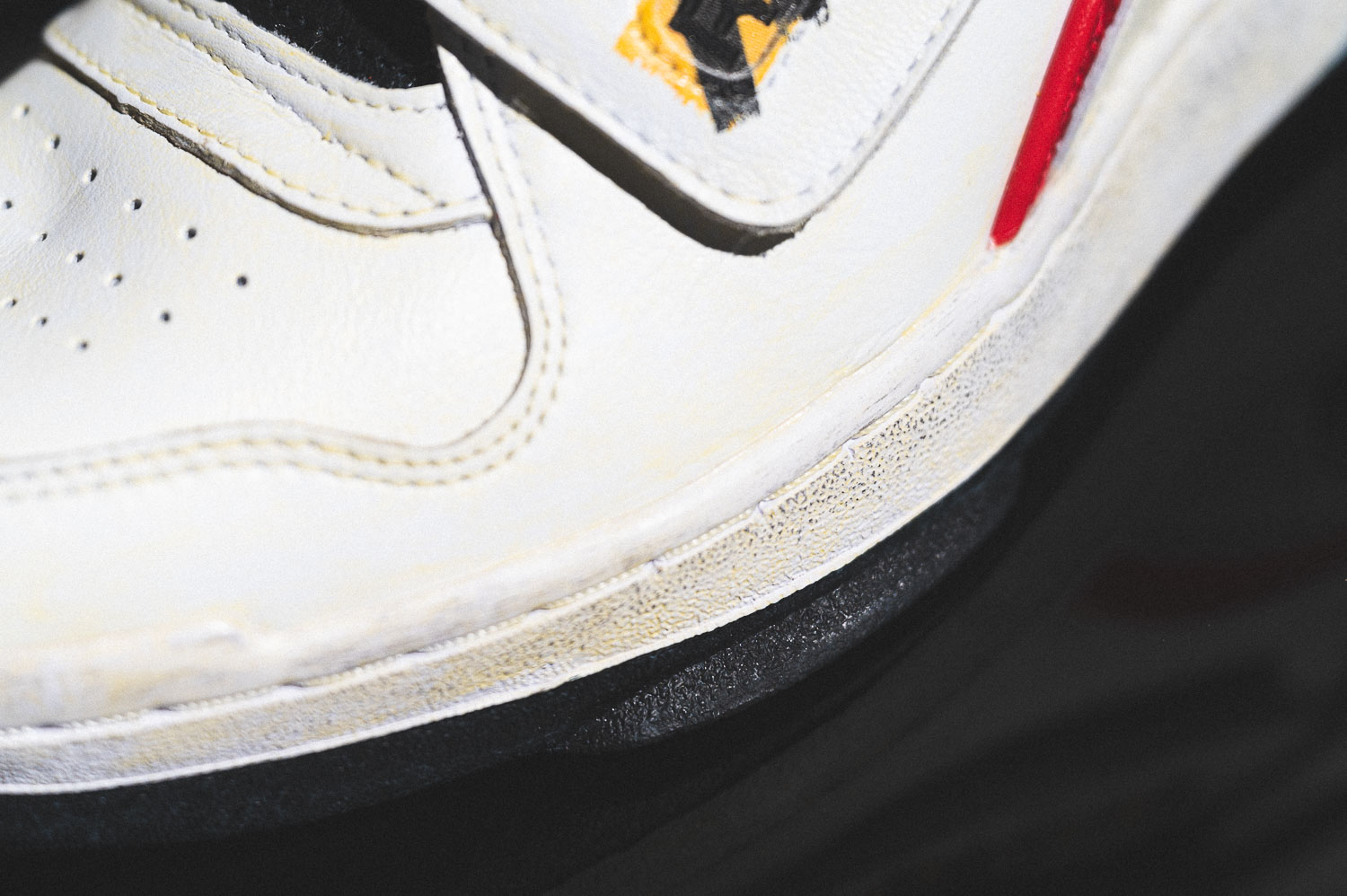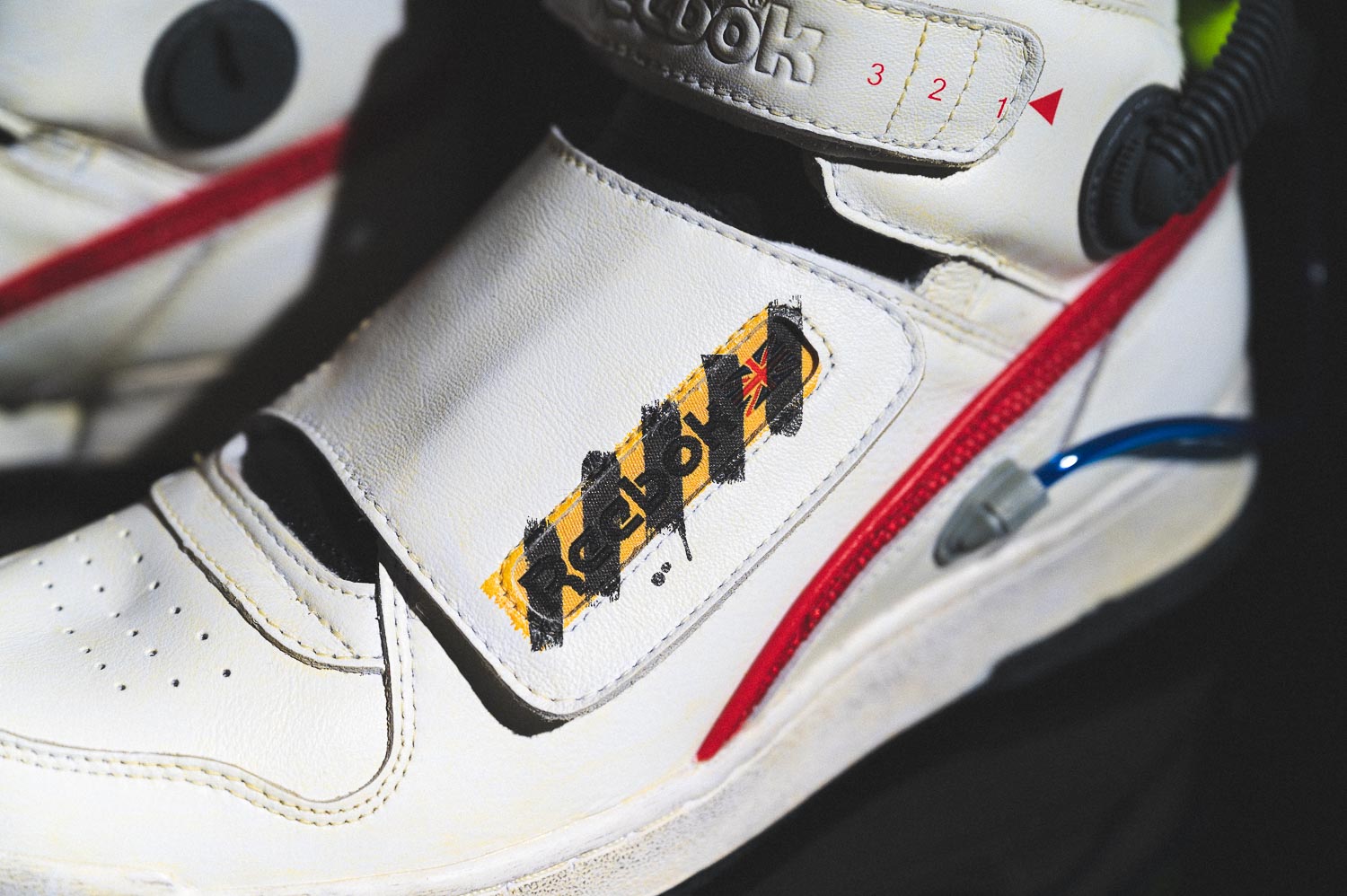 - 魔鬼氈上 Reebok 標誌:手繪上一層抓鬼武器的警示線