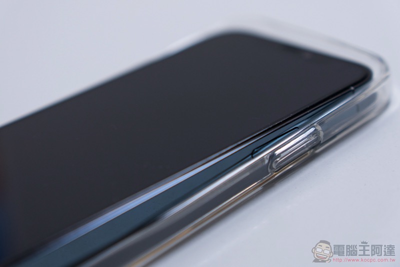 採用全面環繞機身四周的 TPU 邊框安裝起來相當簡單,只要把 iPhone 輕輕滑推入保護殼內並確認螢幕表面已經正確「陷入」,基本上就完成了安裝 :