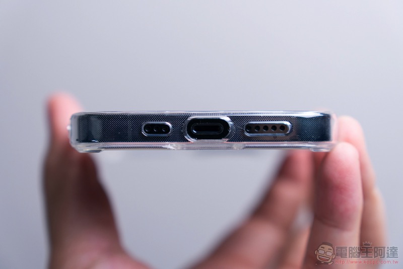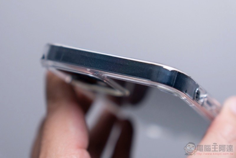 雖說因為這樣的關係,這款殼會沒有一般 TPU 保護殼那樣好拆 -- 小技巧:從鏡頭角落開始扳開就會輕鬆很多。不過畢竟是防摔殼,這樣的設計應該也是要確保摔落時,iPhone 不會自己先脫離的尷尬狀況(笑):