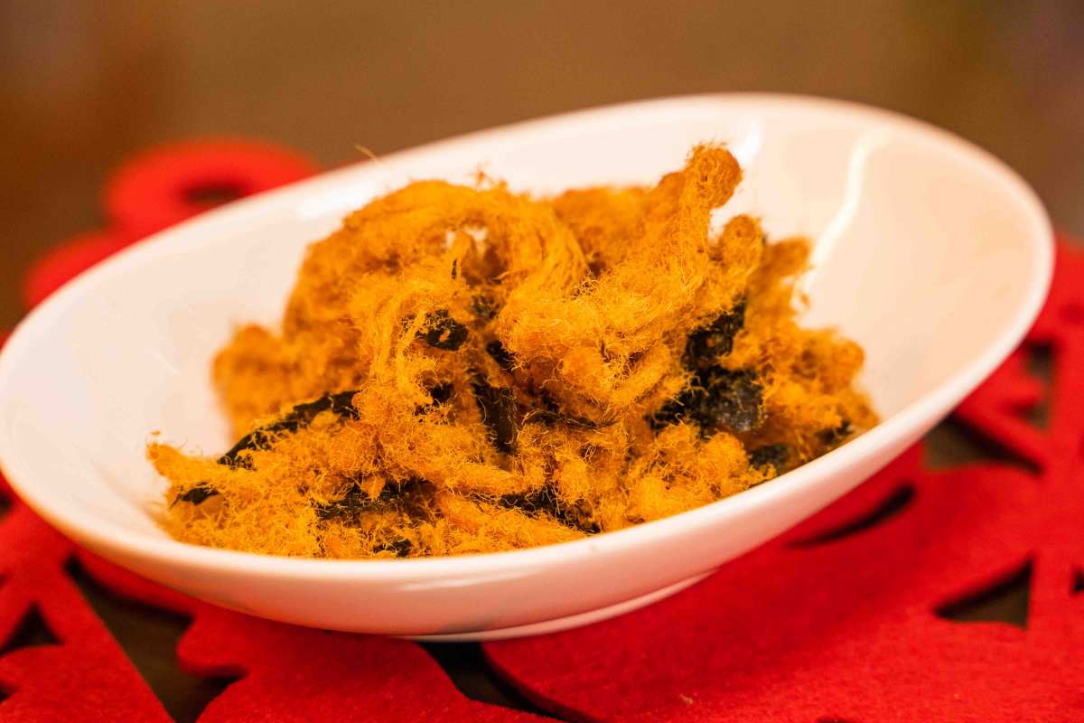 「豬肉絲」也是台灣傳統小吃之一,常常拿來佐以啤酒、高粱or熱炒菜餚的墊底料,是非常罪惡的組合(笑)。每一條豬肉絲都要經過煮製、炒鬆、烘培等工法,口感綿軟酥鬆。肉絲的最大特色就是其纖維,為了讓豬肉保有最原始的風味&古早味,「纖維」就是非常重要的角色,「福味馨」的肉絲不會硬邦邦難以下嚥,是大人小孩都會喜歡的伴手禮喔!