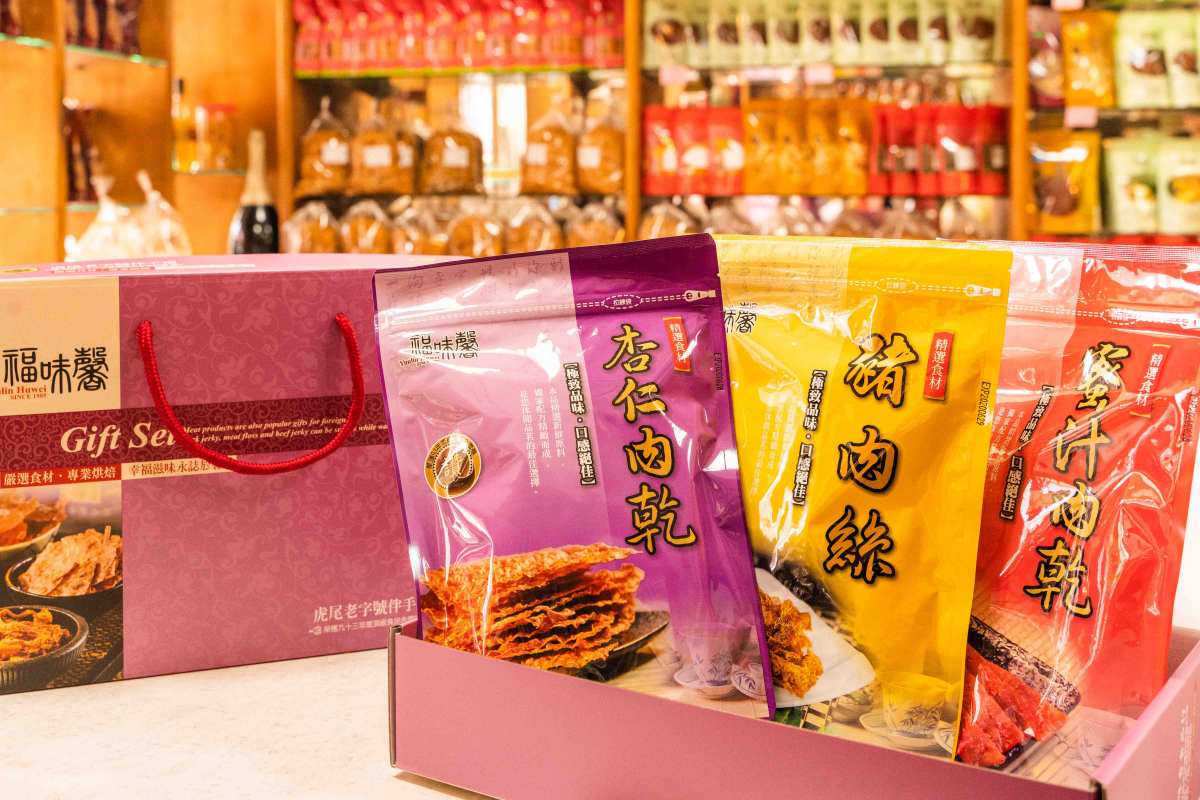 福味馨主打商品是肉鬆、肉角、肉乾&肉絲,不僅常客會一次買5、6包回家囤,更是團購客必買的商家之一(妞編輯當天看到好多箱子是要寄來台北的),尤其現在推廣「在家購物」,網購的實力可是不容小覷的!隨著觀光客的減少,店裡的生意是否下滑?老闆說:「因為網購的關係,生意不降反升!」