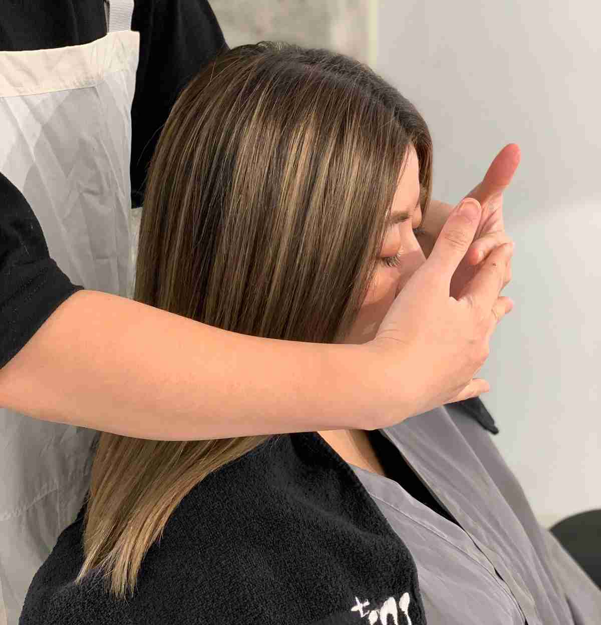 接著來到洗髮區,這裡也超~美,看出去是一個小庭院,沒想到在東區也能有種度假感!「微醺放鬆洗髮」特別選用茶樹控油洗髮精,深層淨化頭皮,搭配頭皮舒壓防禦,利用B5彈力潤髮修復,妞編輯只能說,到這個步驟,真的會斷電,太太太放鬆了!