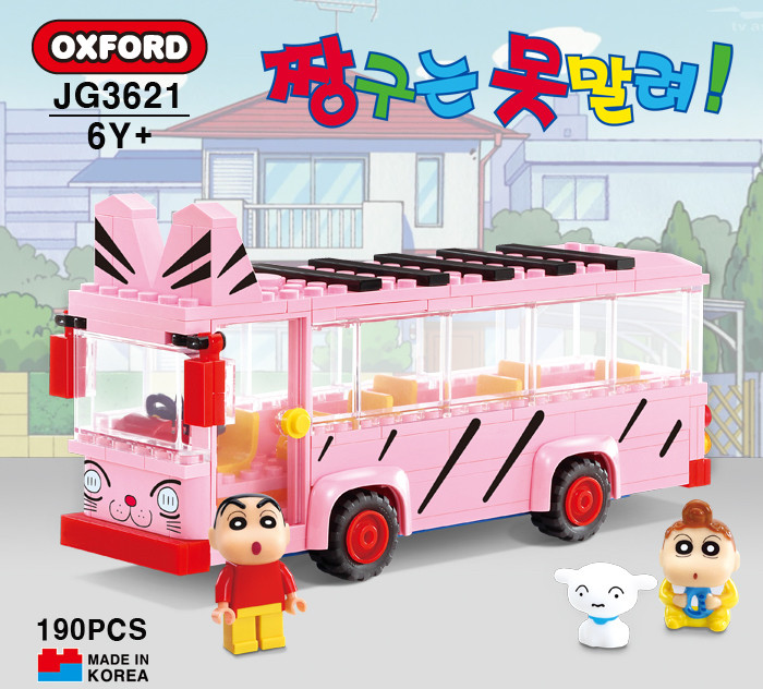 有了「小新的家」積木,那當然也不能少了上學日會經過小新家的「雙葉幼稚園校車」積木!外型超吸睛的粉紅貓咪校車,只要讓人看一眼就能留下深刻印象,就跟小新的個性一樣搞怪又可愛~而這次OXFORD推出的「幼稚園校車積木」就完美還原了《蠟筆小新》動畫中的粉紅色貓咪造型,超級經典!