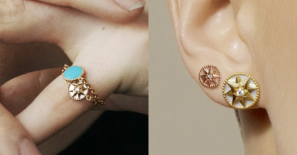 這個有著八芒星圖案的「風玫瑰」羅盤標誌,宛如迪奧先生成長生涯的Lucky Charm,陪伴一生。品牌珠寶創意總監Victoire De Castellane在「Rose des Vents」的創作中,便以此造型注入意念,讓這一系列可翻轉式的珠寶設計,一面是呈現單純的寶石質地;另一面則是鑲嵌單顆小鑽的風玫瑰八芒星,正反兩戴各有風情,好比一枚珍貴的幸運符,而你就是自己的幸運星!