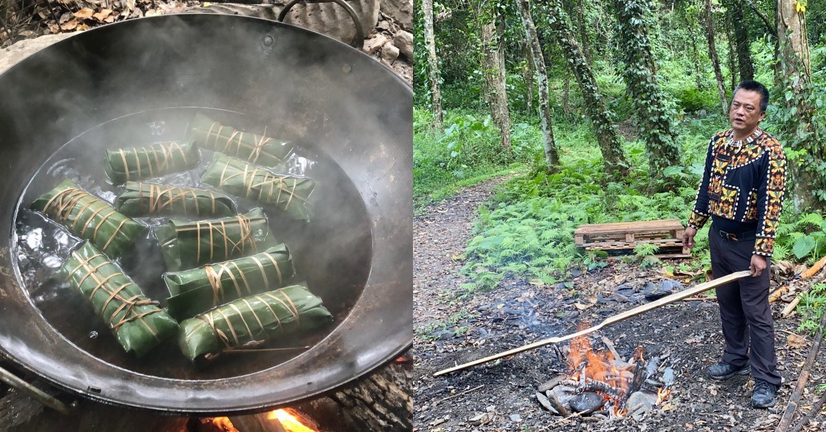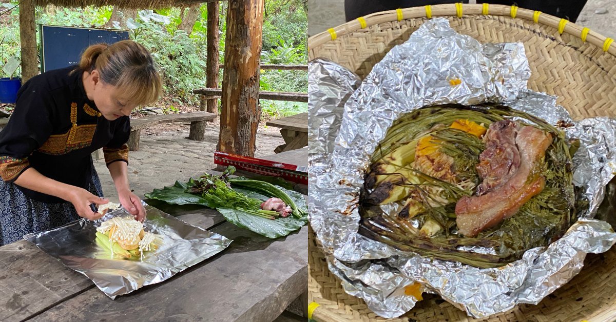 特別的是,在導覽中看到的部分植物同時也是午餐食材,遊客可以體驗地悶食(類似控窯)和DIY小米粽,其中妞編輯最推薦小米粽的製作,先將採集來的荖葉清洗,再搭配事先醃漬好的餡料(小米、南瓜絲、調味料),一層餡料一層豬肉堆疊,最後用月桃葉包覆水煮,鹹香軟糯的口感讓人念念不忘!(妞編輯好想再吃一次啊)