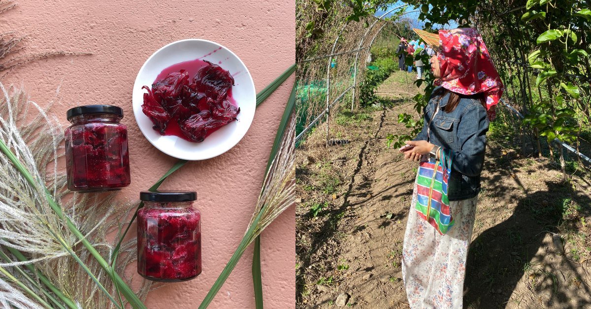 吃飽喝足後,緊接著推薦來到鹿野鄉的「饗嚮台東」,這裡是由幾位返鄉或移居青年所成立,他們串起台東的農產、部落文化祭典等,觀光客來到此處可以深入園地認識農作物、親近環境生態、體驗手作等,非常有趣。而這次妞編輯體驗了採洛神花,並醃漬成蜜餞,從果實採摘到變身桌上佳餚,吃起來更有感!(這個園地超好拍的)