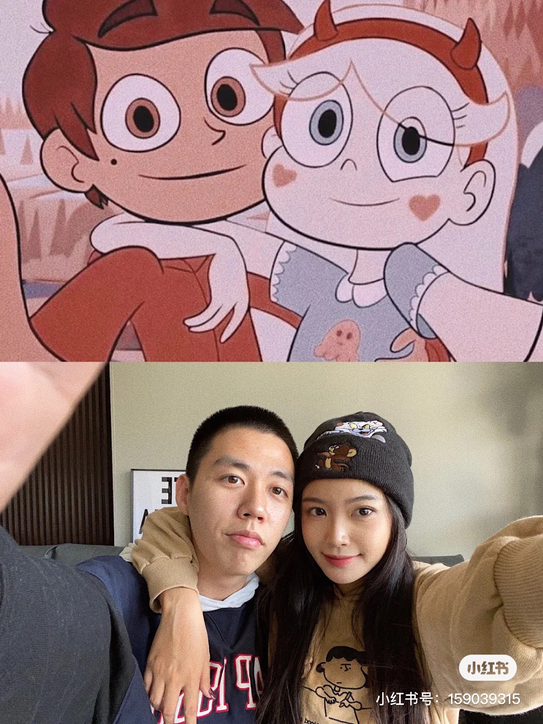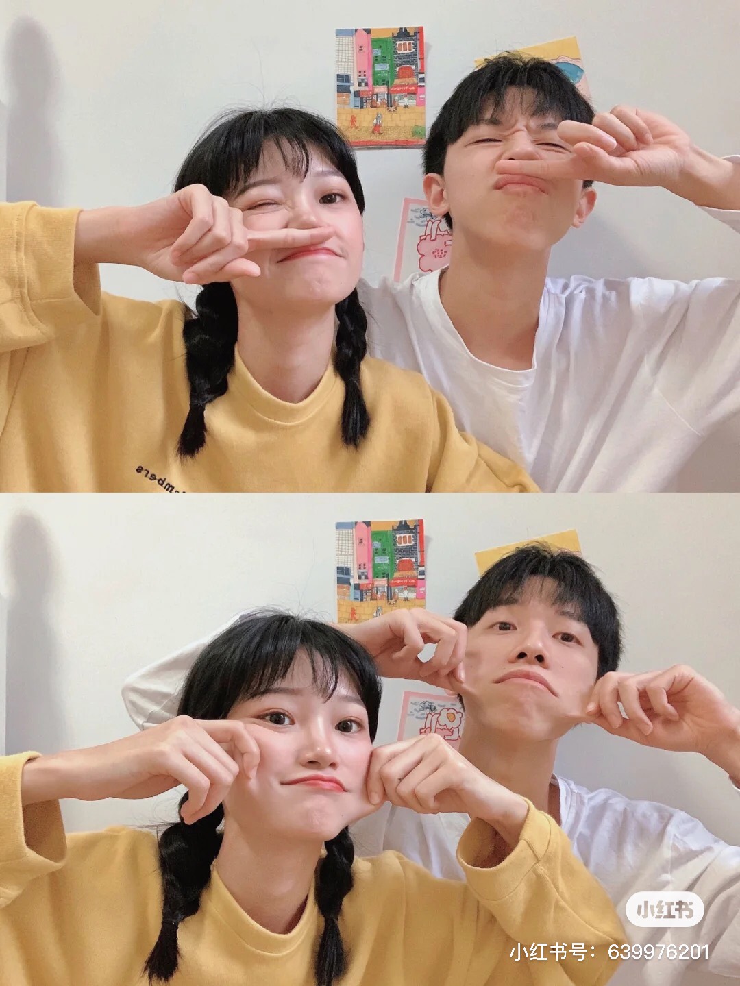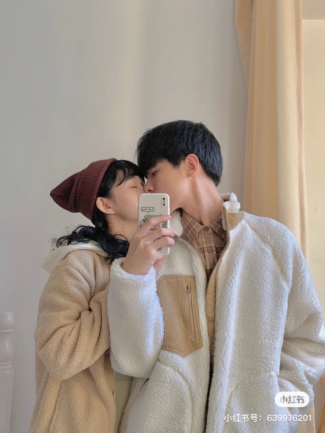 1.對著鏡子拍,女生依偎著男生也超Q可愛~