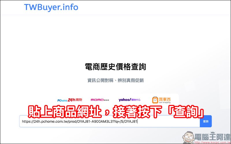 這時只要將商品網址直接貼到 TWBuyer.info ,接著按下「查詢」按鈕: