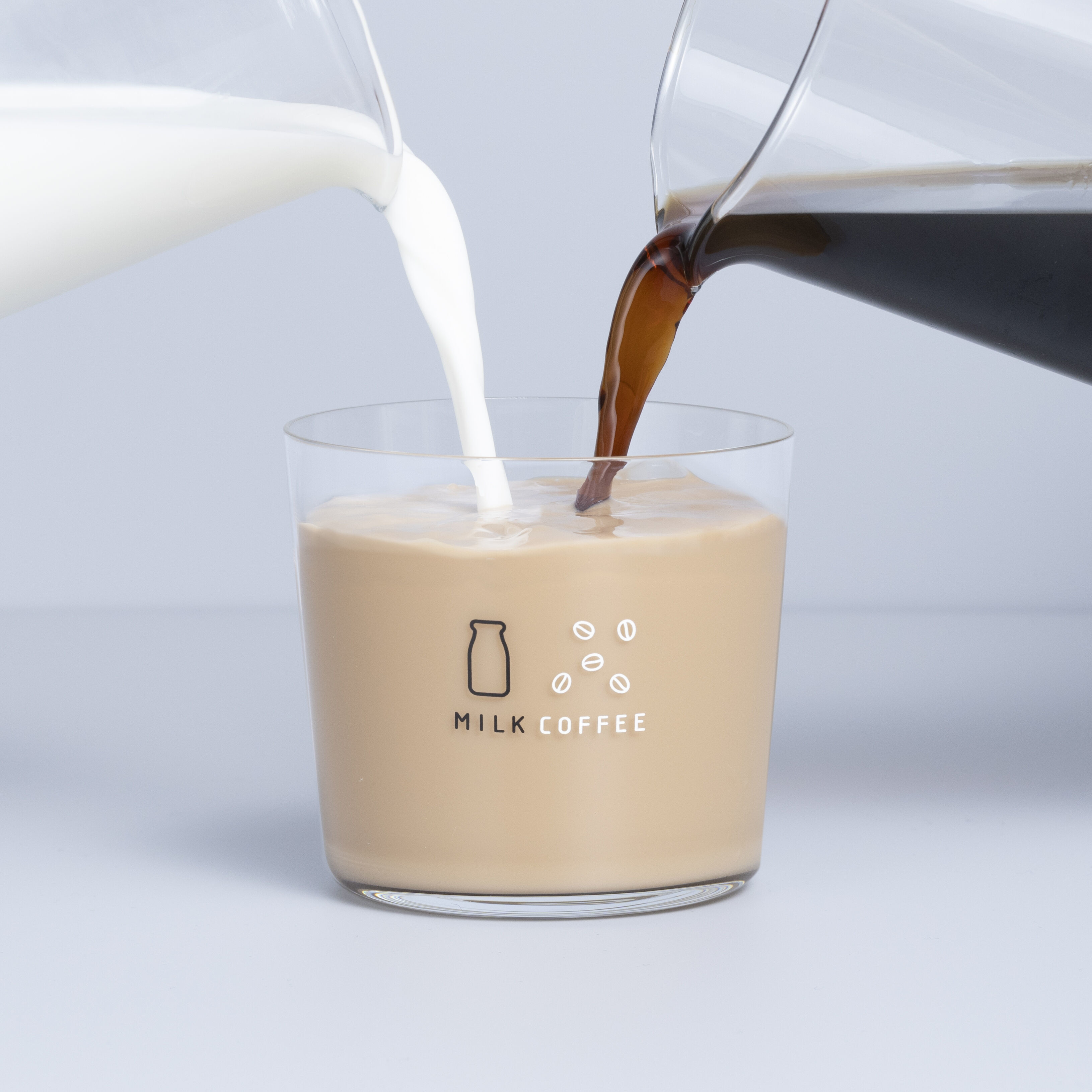 設計師辻尾一平咖啡就是不會好好喝,非要倒來倒去不可。同一個杯子印上白線「珈琲」和黑線「牛乳」,倒進烏漆媽黑的咖啡和潔白的牛奶字就會被飲料的顏色影響而跳出來。有趣的是,當你想要弄杯「拿鐵」混合黑白二道,「珈琲牛乳」四個字就會出現開始自我介紹。