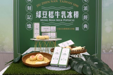 「舊振南綠豆椪牛乳冰棒」採用舊振南經典清香綠豆沙餡,搭配黑糖風味寒天,其中清香綠豆沙餡是招牌商品綠豆椪的菁華,嚴選中顆飽滿綠豆仁,經過泡、洗、濾、蒸、壓、煮、炒七道繁複手工程序,製成酥鬆綿密的餡料。