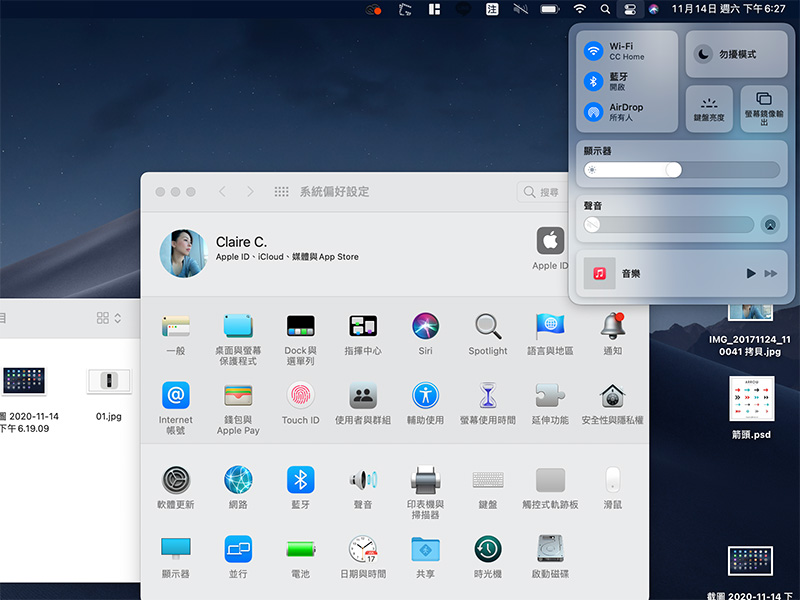 Apple 自家稱 Big Sur 是 MacOS 10 推出以來在設計方面最大的跳躍,整體來說新的外觀也帶來新感受。在功能表與 Dock 顯示部分現在更透明,就像 iPhone 與 iPad 中的 Dock ,彷彿圖示、時間漂浮在桌面之上,如果更強迫症一點將 Dock 與功能表都隱藏起來,你甚至可以擁有超乾淨的桌面。Finder 部分經過重新設計,還具備更乾淨簡潔的圖示。