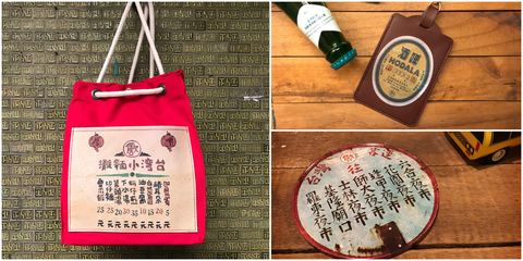 小麵攤卡箕袋、台灣客運圓形磁鐵杯墊、啤酒Yoyo證件套...等等許多的特色復古小物現場販售。