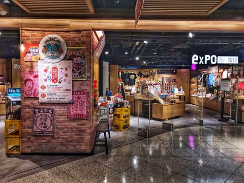 位於中山地下街的誠品R79也同步變身「柒玖商行」,推出了多款復古趣味伴手禮及特色創意設計,連地板都同步的拼貼了復古花磚以及有窗花鐵柵的設計。