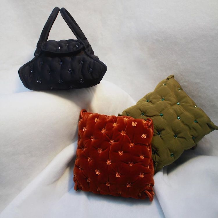 延續這種以家飾藝術品設計包包的想法,近日品牌直接拿傢俱轉化成包袋設計!運用優雅感感十足的絨布設計,加上車縫線的紋路,讓一款包包呈現出宛如抱枕的可愛造型!