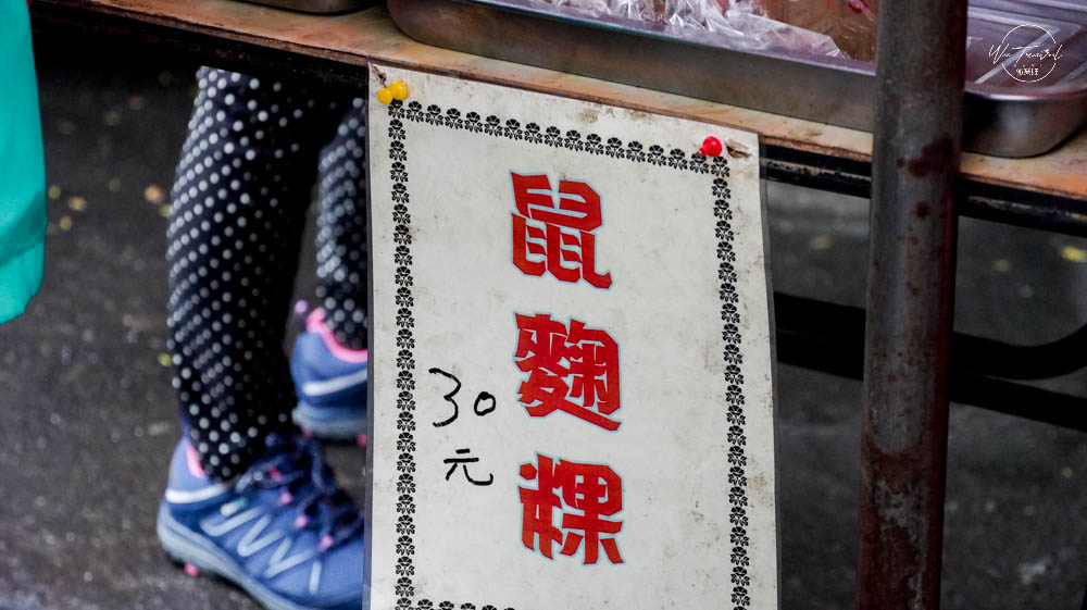 沿路在石碇西街上也不少家裡面東西拿出一張桌子就開始販售,城鄉街弄中,滿滿的人情味,這是石碇「鼠麴粿」使用鼠麴草製作的粿,這是我第一次看到,感覺好奇妙,好可惜當下沒有買來吃。