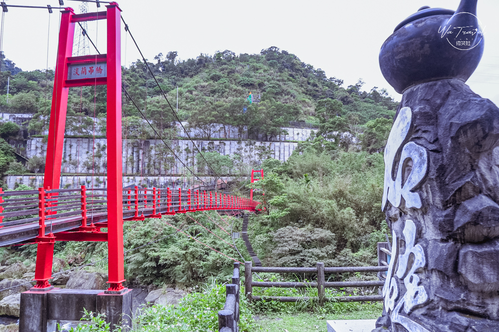 淡蘭吊橋長約一百公尺,整座吊橋橫跨石碇溪,再沿著階梯進入北宜高速公路下的淡蘭古道,一路可通至石碇老街,淡蘭古道全長約2400公尺,步行約1小時!是屬於親子可以通行的等級步道,除了淡蘭古道,這裡也有通往筆架連峰的入口!如果選擇爬古道建議要早一點出發,才不會影響旅遊時間,降低天黑下山危險。