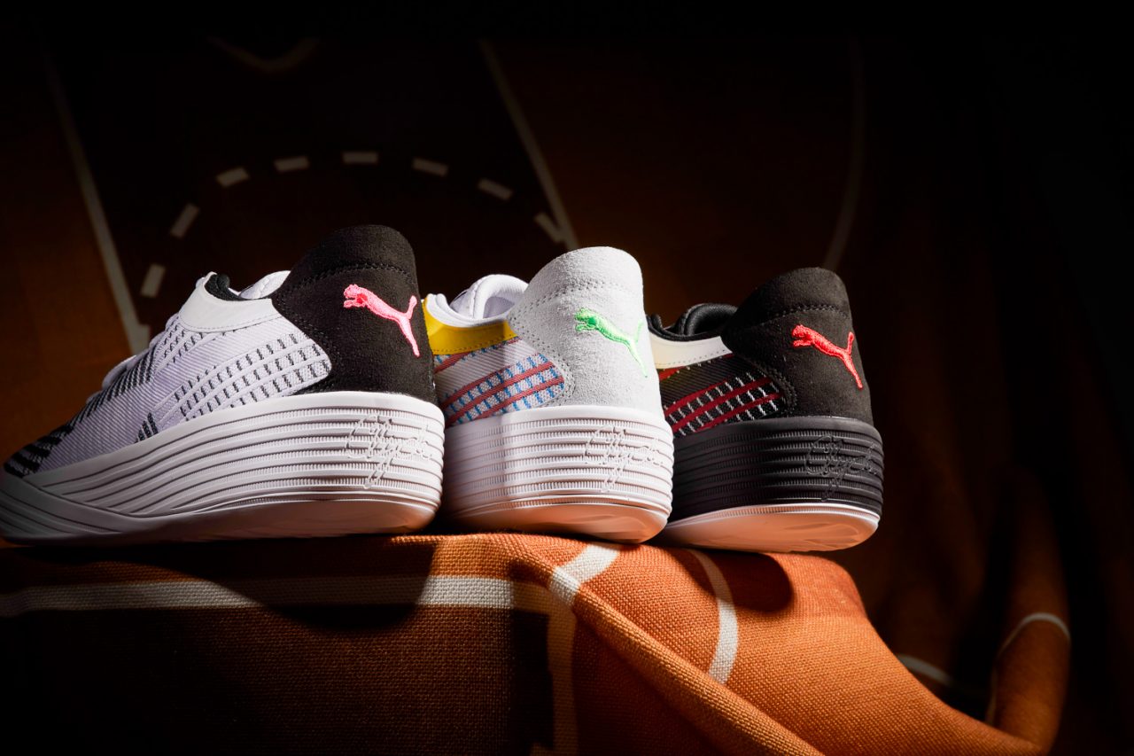 說到花俏,大家可能不曉得 Walter Frazier 在球場上同樣也不甘低調,據悉當時他與 PUMA 簽訂的代言合約裡有個要求就是每場比賽的球鞋都要有不同配色變化,「據傳共用了超過 390 種顏色」人稱 Mr.PUMA 在品牌總部主掌著檔案室的 Helmut Fischer 說,如今 Clyde All-Pro 各種顏色的紗線穿梭把這位傳奇球星場內外都多采多姿的身影濃縮進鞋裡,
