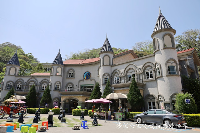 歐式城堡建築搭配超大的西洋棋盤,就像走進童話中