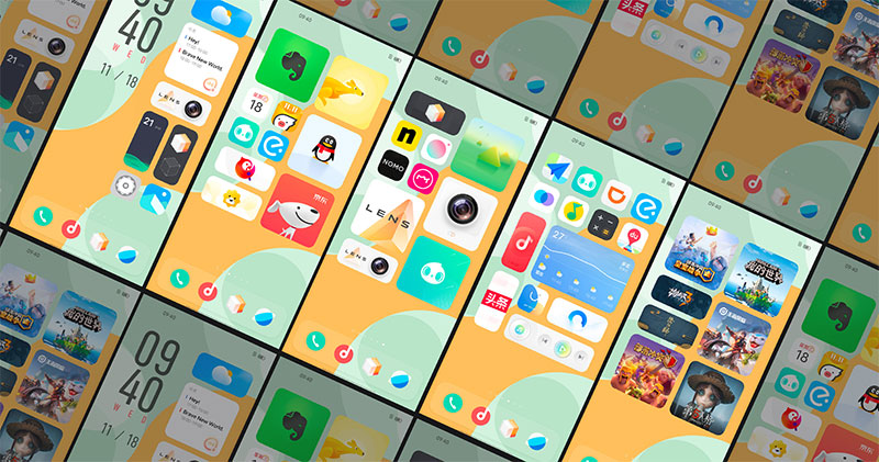 在 OriginOS 系統上主要以傳統「華容道」遊戲為發想,以讓 Dock 外的桌面元素不再侷限於標準圖示的單一型態為核心進行改良,用戶可以自行將應用圖示設定為更大的方塊或長條,創造自己喜愛、獨一無二的配置組合。在常態的華容道式配置中,除可放置傳統的標準圖示外,在互動方式上也有變化。