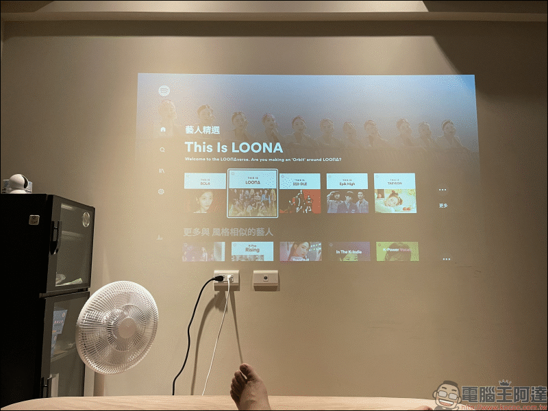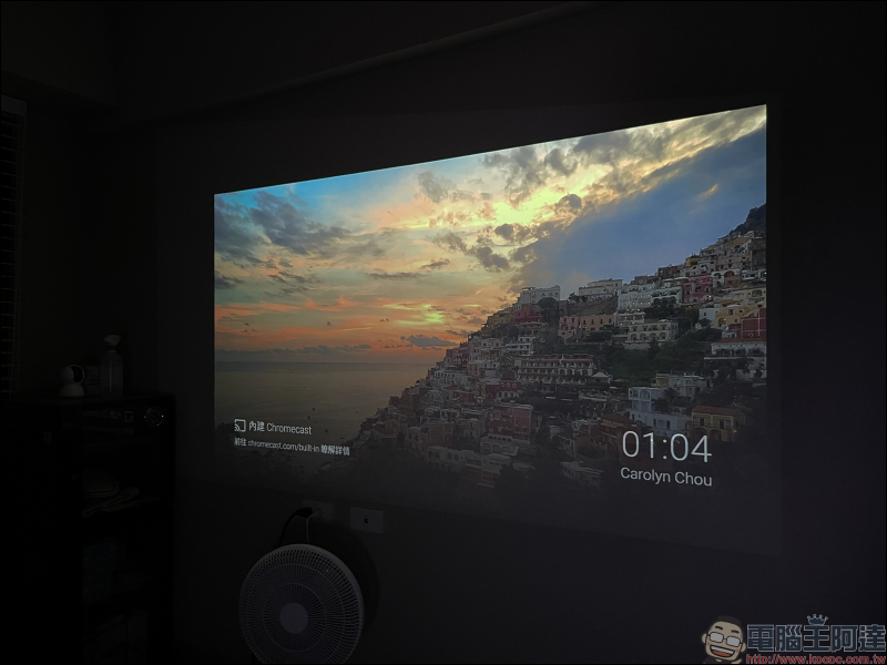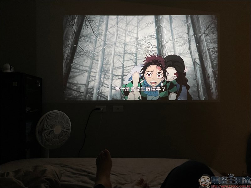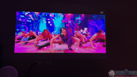 實際投影的畫面部分,從上圖就能看出峰米 Dice 真無線智慧投影機的色彩鮮明且清晰,而峰米 Dice 真無線智慧投影機實際為 1080P 解析度的投影機,不過訊號輸入可支援 4K 高畫質,看影片或是玩遊戲都相當過癮。