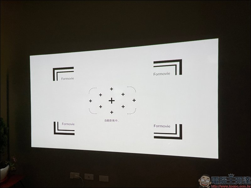當使用者移動投影機時調整了角度、距離,峰米 Dice 真無線智慧投影機會自動開啟自動對焦頁面: