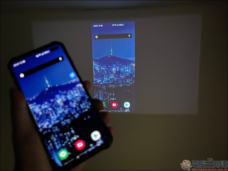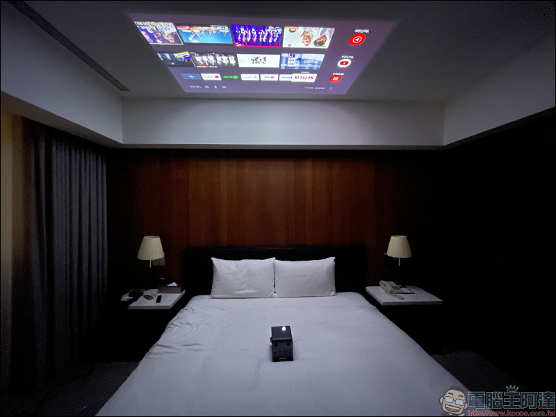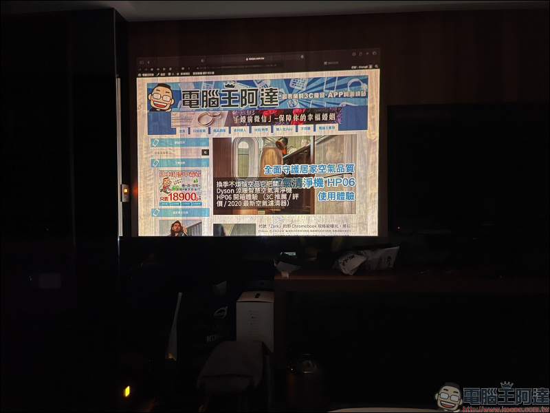 即便像是飯店房間木質的牆面,作為投影的表面還是能看清楚畫面: