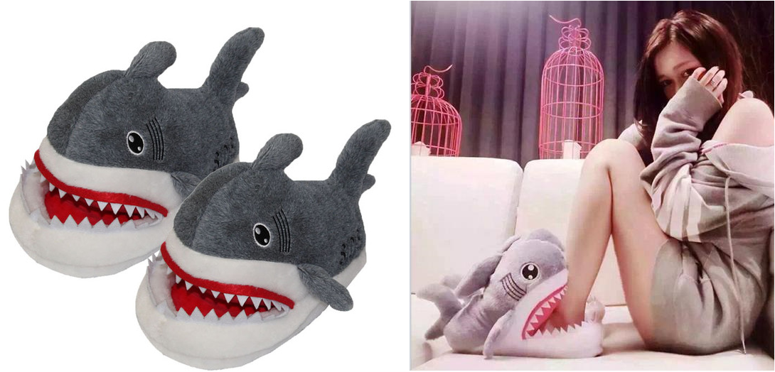 沒看到圖片以前,都不知道原來開口是在鯊魚嘴巴!!這雙鯊魚咬腳絨毛拖,真的太酷炫啦~~ 很想知道是誰這麼有創意,想到這招設計造型拖鞋~