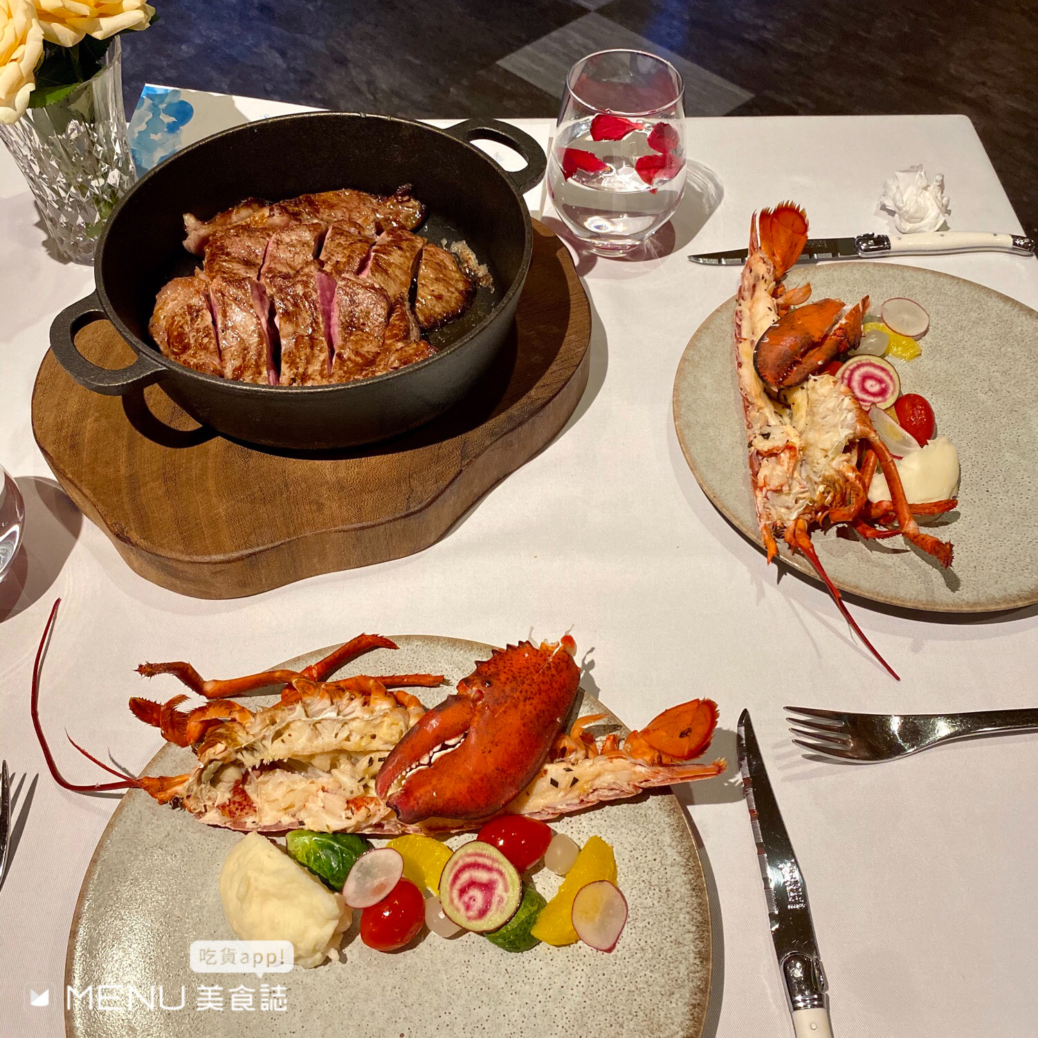 餐廳地點位於愛河對面,用餐時能看著外頭風景悠悠地聊天,餐點精緻、用餐氣氛浪漫!龍蝦肉質鮮嫩,牛排嫩度很夠份量十足,整體餐點表現很棒!法式甜點推車讓人少女心不斷噴發!