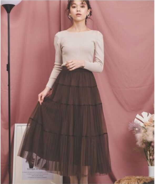 簡約的上衣可以配上具有份量感的下身,有層次的紗狀長裙是纖細女孩的好朋友,散發秋冬穩重的氣質。