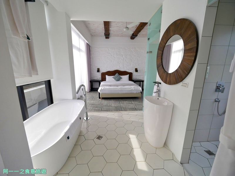 因為浴室採充滿情調的開放式設計,