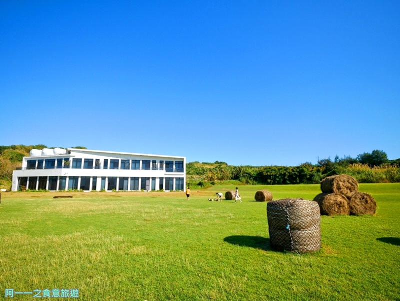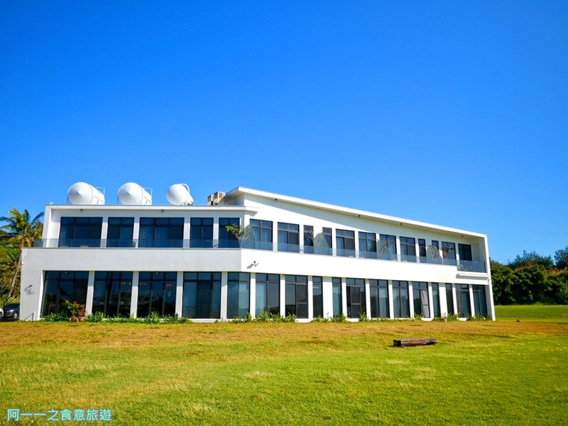 在藍天與綠草陪襯下更凸顯建築的白,