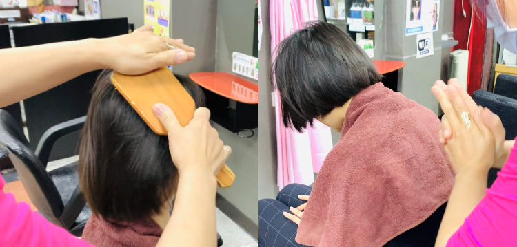 正因為有穴道按摩的硬底子,因此在這邊除了180元的快速洗頭之外,299元的健康洗頭和499元的SPA洗頭,在洗頭之前,美髮師都會先替你按摩,且至少會按20分鐘。而最讓Joan編驚艷的莫過於一開始小麗姐用按摩梳在我的頭頂上來回按壓,以及後來的抓龍與敲背,真是酥麻到骨子裡。據說SPA洗頭還會加碼用刮痧棒按摩頭皮,大家一定要試試!