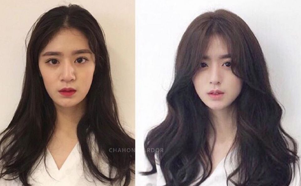 透過長劉海,女孩能修飾較寬的顴骨或肉肉臉頰,讓臉型達到修長。如果覺得直瀏海太過嚴肅銳利,也可以選擇S型彎度的波浪瀏海來修飾、營造小臉。