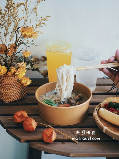 「越好吃越南料理-越式餐盒專賣」他們家的外帶餐盒相當文青有質感,也特別設計讓湯汁不易滲出,回收清洗也很方便唷!