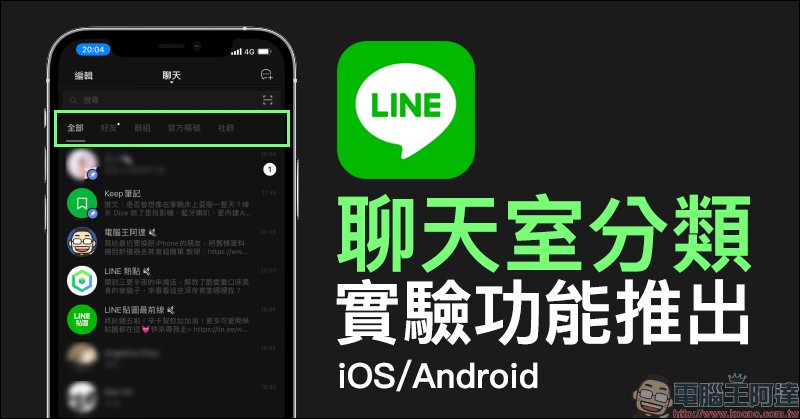 LINE iOS 版也推出「聊天室分類」實驗功能:好友、群組、官方帳號和社群聊天自動分類!