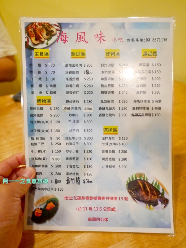 海風味小吃菜單價位非常清楚,
