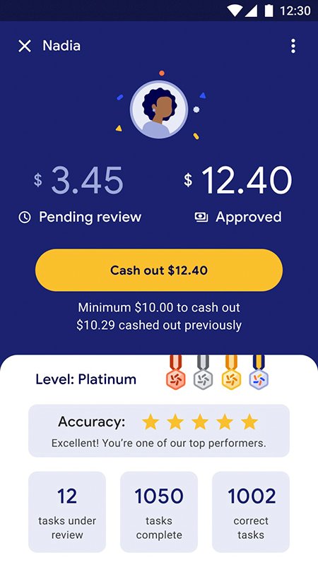 以上可以看得出來,Google 可能為了更精進服務的品質,現在打算以課金的方式取得更好的服務數據。事實上,根據應用的描述,任務的分配也會依據使用者的表現而有所差異 -- 顯然,如果你的評級不好的話將會有所影響。而且金額獎勵的部分也有分待審核的獎勵金項目與已經確定獲得的獎金兩個項目。如果想要領出獎金的話,則是最低需要達到 10 元可以領取(這不確定是不是美金啊)。