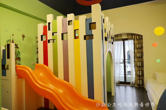 我們這次3個家庭來,所以住了2個4人房、1個6人房,4人、6人房都有溜滑梯