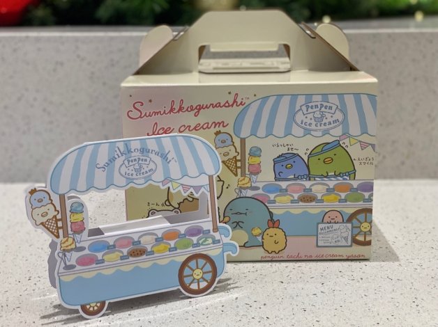 妞妞們只要購買「白熊冰淇淋派對」冰淇淋蛋糕,隨盒附贈「專屬提盒」和「歡樂派對包」,其中歡樂派對包含有「角落小夥伴立牌5個角色」、「冰淇淋車立牌1個」和「派對帽1個」,想要一次收集「企鵝? 」、「炸豬排」、「蜥蜴」和「貓」就要趁現在啊!