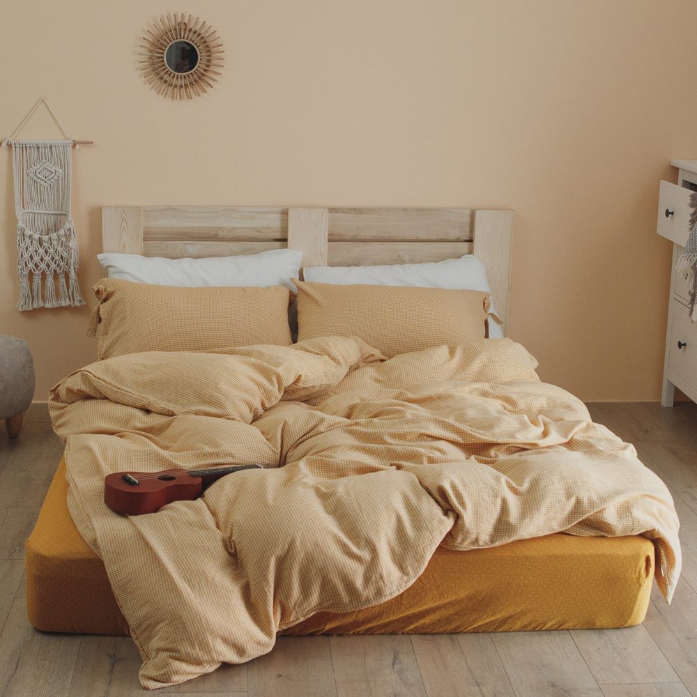 最近網路聲量很高的翔仔居家,高質感、簡約日系的寢具很受網友們的青睞~ 這款暖陽黃的床包組,就像冬天的太陽,溫柔、暖和。整套寢具是以先染後織的方式製作,優點就是久洗不易褪色,還能呈現自然飽和的色澤。
