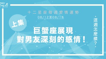 - 【08/12-08/18】十二星座每週愛情運勢 (上集) ~ 巨蟹座展現對男友深刻的感情!