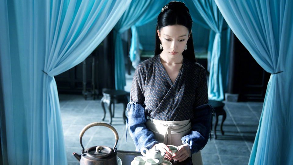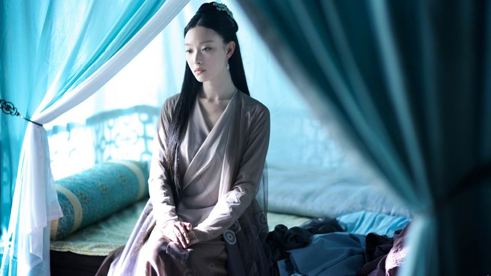 《宸汐緣》倪妮古裝造型13:墨綠色素紗裙