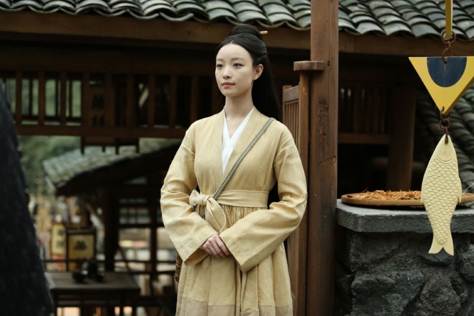 《宸汐緣》倪妮古裝造型8:杏仁葵扇素摺裙