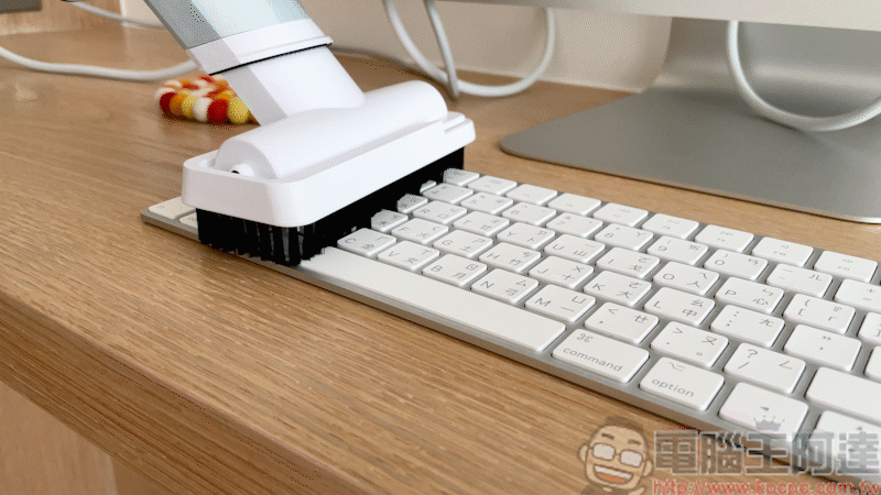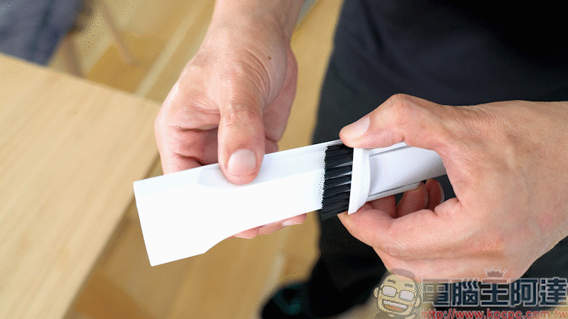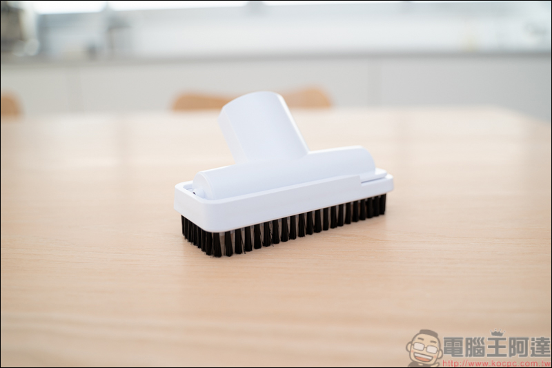 接著是二合一的毛刷吸頭,吸一些比較大的垃圾,像餅乾碎屑、紙張碎片之類的,就可以使用毛刷吸頭來做清潔使用: