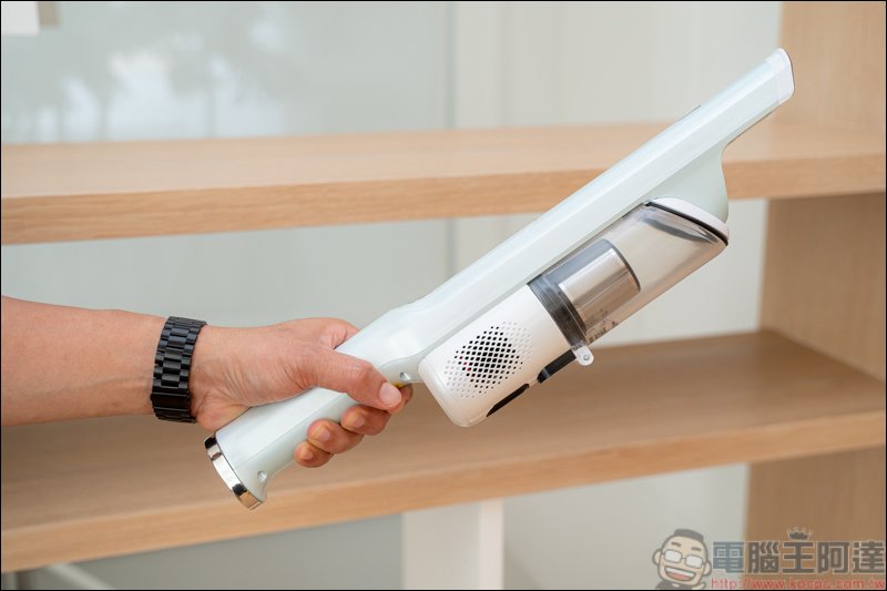 藍寶吸塵器機身相當輕巧,單手握持也能輕鬆地使用,小巧的機身還搭配直流無刷馬達,除了噪音更小,最強吸力可以達到 15,000 Pa ,吸力效果已經能媲美比它體積更大、重量更重的吸塵器: