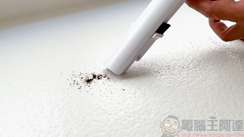 像咖啡粉這種細細的碎粒,使用扁吸部分就能很輕鬆地全部吸起: