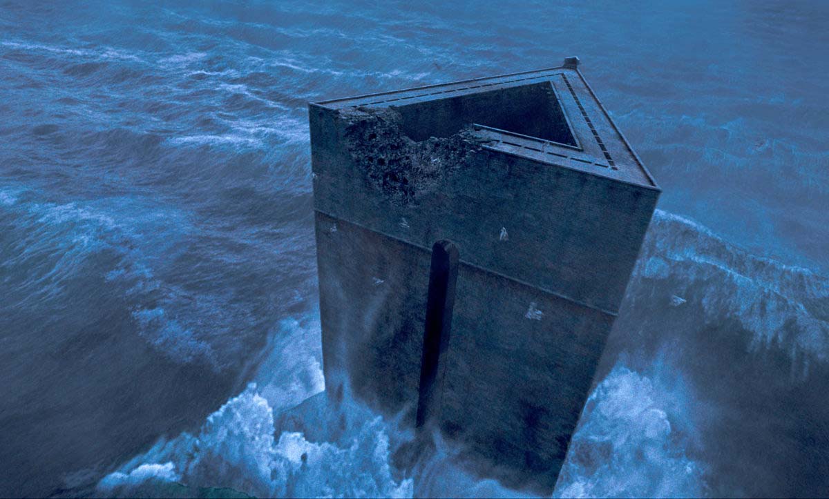 阿茲卡班起初只是一座堡壘,裡面居住著一位名叫艾克斯蒂斯的邪惡巫師,這個巫師樂於將麻瓜引誘到他的島上,再將他們折磨致死。艾克斯蒂斯死後,他在堡壘和島上使用的隱藏咒失效,魔法部這時候才知道有這樣一座小島存在。此時這個地方到處都是催狂魔,當局曾考慮過摧毀堡壘,但他們害怕這樣做之後,這座小島或者島上的催狂魔會對他們進行報復。