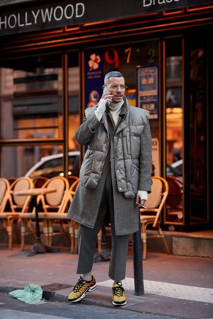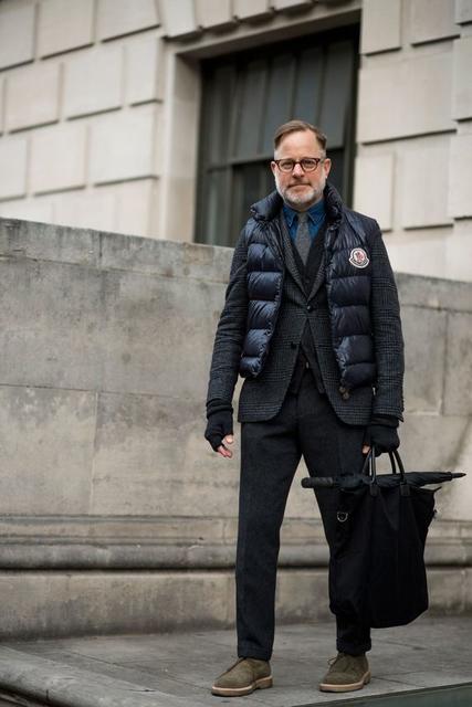 其實羽絨背心不只可以穿在大衣裡,想要「外搭」也完全不是問題,這種穿法偏向時尚的造型,穿搭難度也較高,謹記一個原則:羽絨背心的份量要夠「重」,挑選版型較寬且材質夠厚的款式,整體比例會顯得更加和諧。