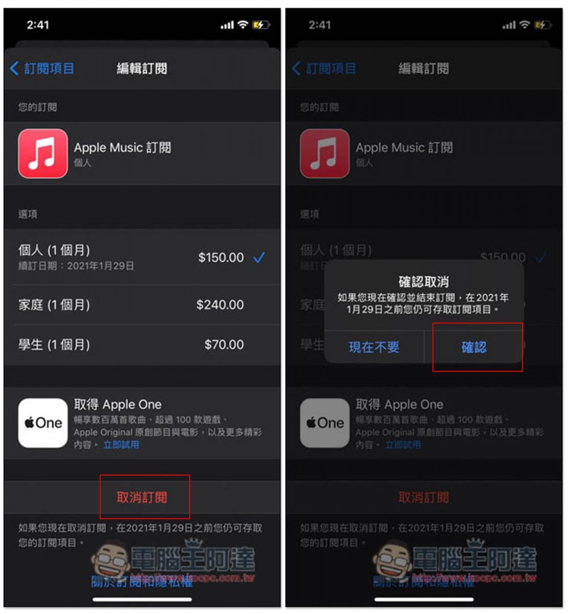 Apple Music 訂閱取消的操作步驟